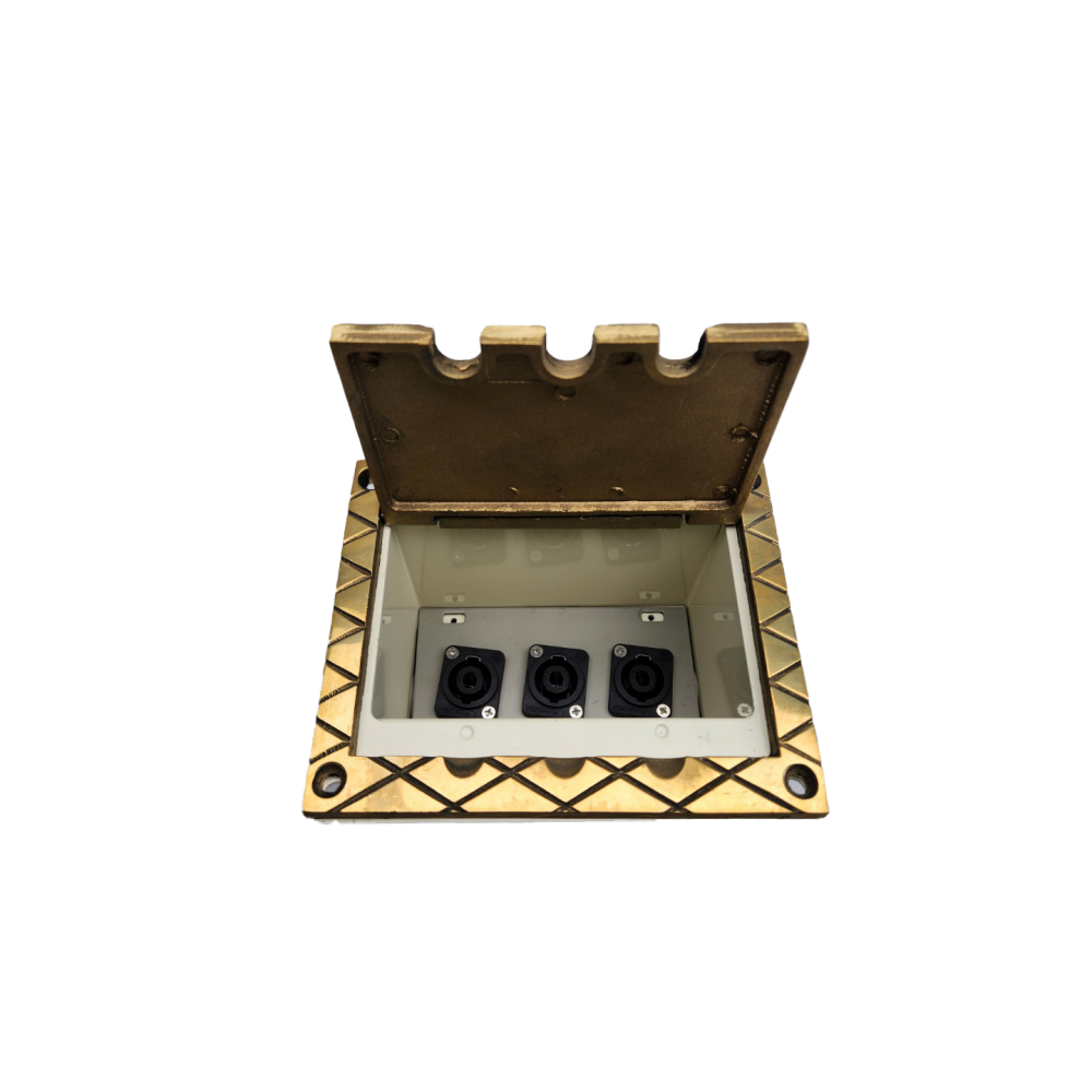 마이크 커넥터를 바닥에 취부하기 위한 커넥션 박스이며, 내부에 별도의 금속판에 마이크용 전용 잭을 설치할 수 있도록 얇은 철판에 HOLE 설치되어 있습니다.